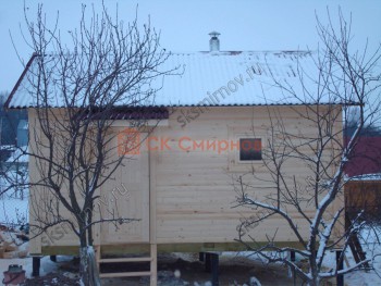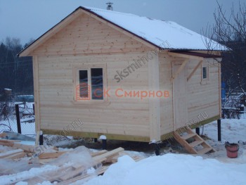 Такая одноэтажная баня 4х6 может быть построена из бруса. Ориентировочный срок строительства 15 дней.