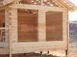 На террасе при условии что она есть делаем перила из строганной доски со всех сторон, столбы террасные также строганные, а не обрезки профилированного бруса с шипом и пазом. Домкратики на столбах для дальнейшей регулировки. Балясины будут сделаны аккуратно. Обратите внимание что в дешёвых случаях это может быть и будет просто вагонка прибирая к неотесанной доске снаружи и столбы будут не квадратные а просто профилированный брус как на видео.