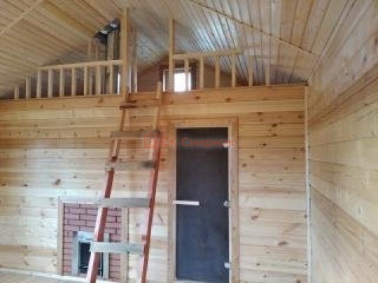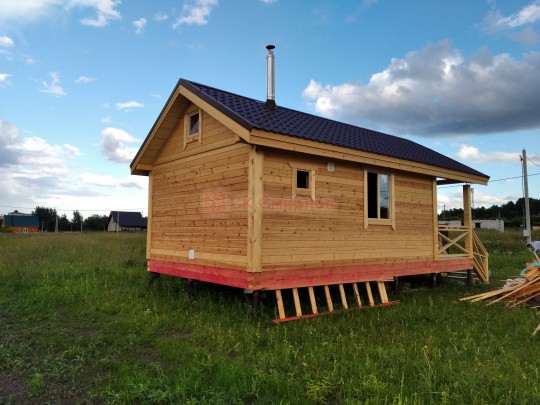 Проект простой: комната отдыха, моечная и парная. Однако есть своя классная особенность — над парной и моечной надстроены палати. Могут использоваться для хранения или в качестве спального места. Есть приставная лестница. Баня может использоваться в качестве дачи.