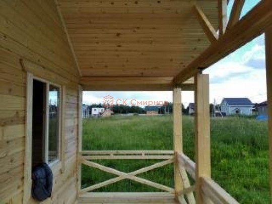 На террасе при условии что она есть делаем перила из строганной доски со всех сторон, столбы террасные также строганные, а не обрезки профилированного бруса с шипом и пазом. Домкратики на столбах для дальнейшей регулировки. Балясины будут сделаны аккуратно. Обратите внимание что в дешёвых случаях это может быть и будет просто вагонка прибирая к неотесанной доске снаружи и столбы будут не квадратные а просто профилированный брус как на видео.