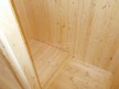 Сруб построен из сухого бруса камерной сушки 140х140. У нашего бруса особенный финский профиль с наплывом по бокам — это защитит баню от появления щелей во время усадки. Кроме того, брусины собираются со сверлением. Это, опять же, нужно для того, чтобы усадка сруба прошла максимально безболезненно.