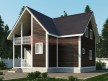 На фото представлен проект красивого дома №159 габаритами 8х8 метров и отличной планировкой общей площадью 116 квадратных метров. Можно выделить несколько особенностей проекта: терраса, балкон, веранда, туалет, ванная, санузел. Коттедж с мансардой, может использоваться как зимний, для постоянного проживания, коттедж.