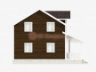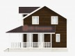 На фото представлен проект дачного дома №174 габаритами 7х9 метров и отличной планировкой общей площадью 125 квадратных метров. Можно выделить несколько особенностей проекта: терраса, веранда, туалет, ванная, санузел. Дом с мансардой, может использоваться как зимний, для постоянного проживания, коттедж.