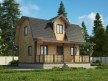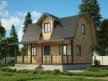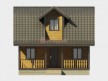 На фото представлен проект деревянного дома №252 габаритами 7х8 метров и отличной планировкой общей площадью 87 квадратных метров. Можно выделить несколько особенностей проекта: терраса, веранда, туалет, ванная, санузел. Дом с мансардой, может использоваться как зимний, для постоянного проживания.