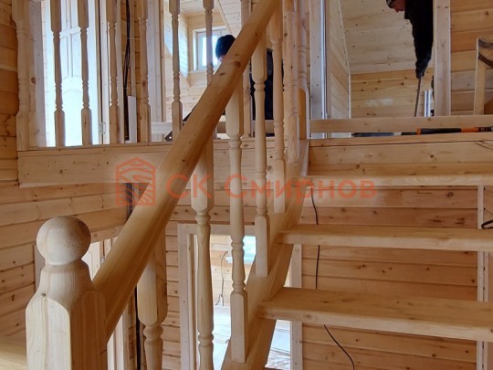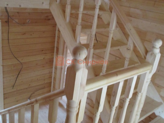 Устанавливаем вполне достойный вариант лестницы, клееные ступени, перила и балясины точеные, столбы и направляющие из строганного бруса. Посмотрите видео на что можно наткнуться не разбираясь в вопросах застройщика.