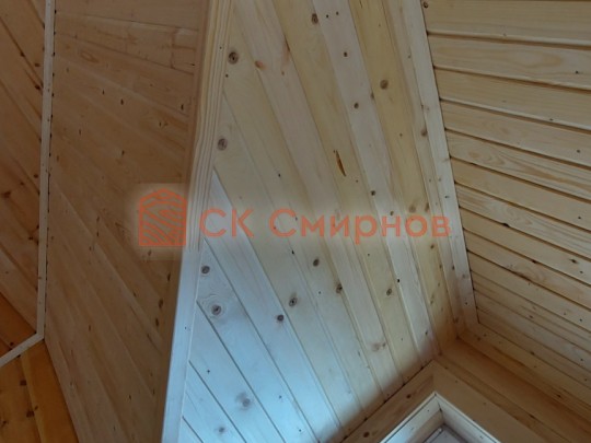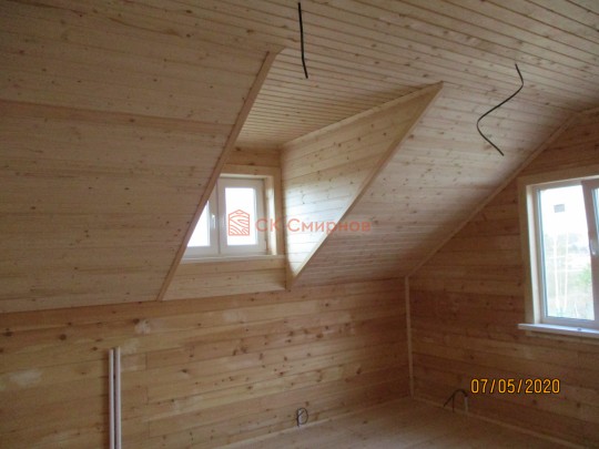 Потолки, стены вансардного каркасного этажа ( если он есть ) обшиваются сухой вагонкой.