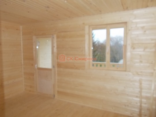 Из профилированного сухого бруса 9х14см, 14х14 см или 14х19 см. Сборка сруба в теплый угол на нагеля или гвозди 200 мм со сверлением отверстия в верхнем брусе (в зависимости от вида бруса).