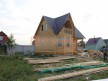 Из профилированного сухого бруса 9х14см, 14х14 см или 14х19 см. Сборка сруба в теплый угол на нагеля или гвозди 200 мм со сверлением отверстия в верхнем брусе (в зависимости от вида бруса).