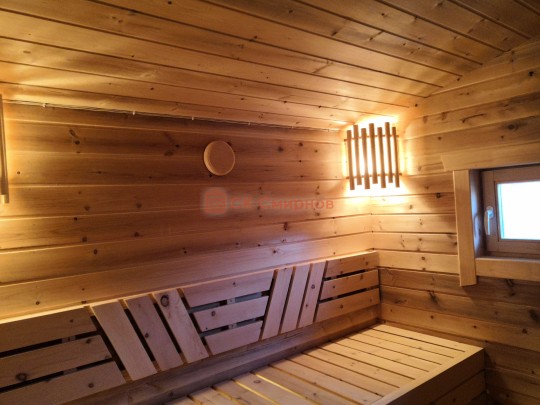 В данной бане мы используем окна вытянутой формы не открывающиеся по умолчанию, но можно за небольшую доплату сделать их открывающимися.