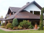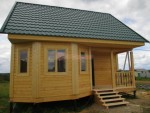 По умолчанию в качестве кровельного покрытия в базовой комплектации домов и бань идёт мягкая битумная черепица Технониколь SHINGLAS (иногда называют «ондулином»). Её можно заменить на металлочерепицу GRAND LINE с полиэстерным покрытием ( палитра RAL зелёная, красная, синяя, коричневая и пр.).